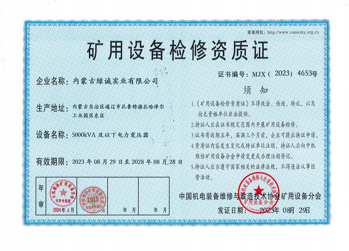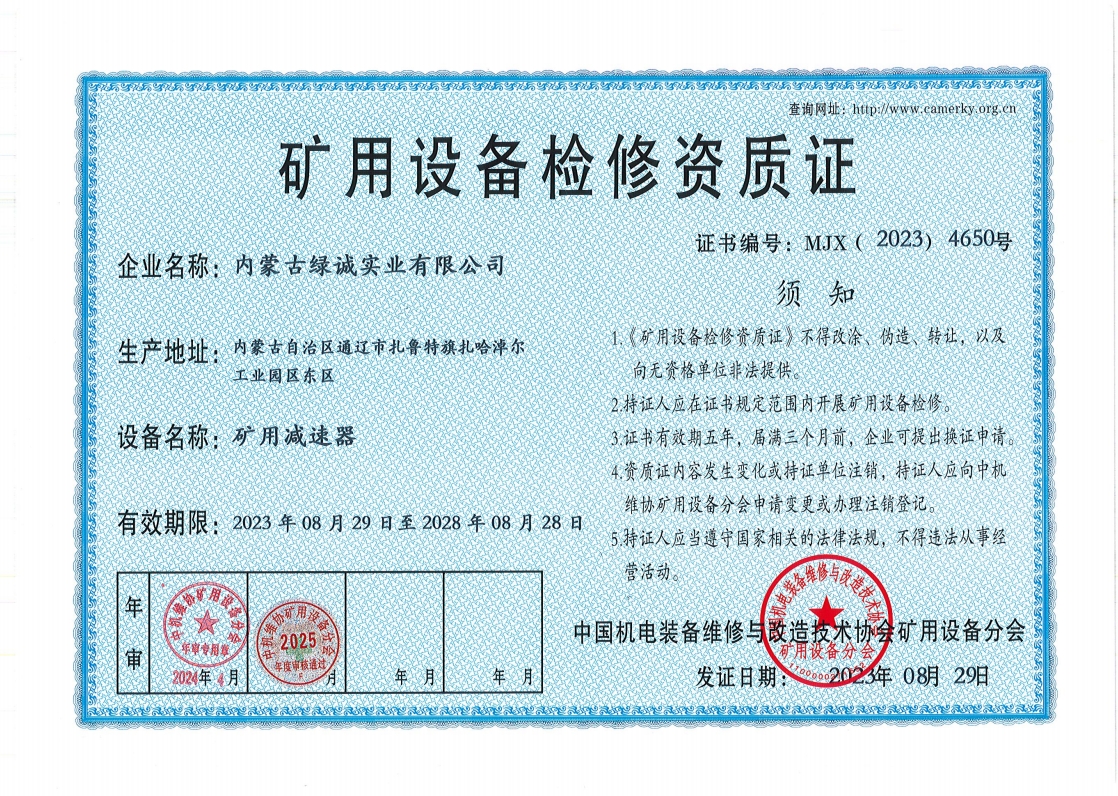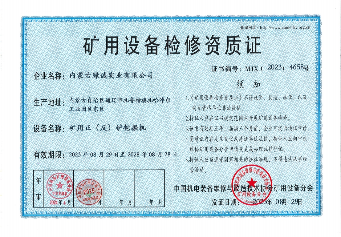 2018年我公司通過中國機(jī)電裝備維修與改造技術(shù)協(xié)會(huì)礦用設(shè)備分會(huì)審核并取得了9項(xiàng)礦用設(shè)備檢修資質(zhì)證書。公司本著“誠信為本 質(zhì)量為先 全心全意為客戶 ”的服務(wù)理念,圓滿完成各個(gè)廠礦的機(jī)械維修及配套服務(wù),期待與您共同合作。